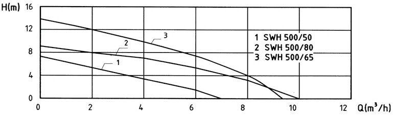 • SWH 500/50 和 SWH 500/65 系列过流直径是10mm