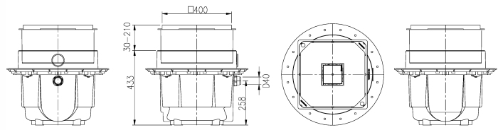 整机德国进口,用于地下安装,预埋于混凝土中,带伸缩式 扩展高度和水平补偿,采用密封胶圈法兰式密封,可以选配防臭虹吸地漏,带报警的污水提升器;