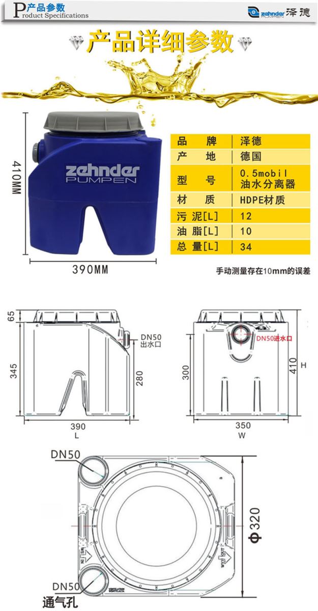 产品特点:HDPE材质箱体,无毒、无味、无臭,具有良好的耐热性和耐寒性;内部经过防附着处理,内部紧凑合理,充分保证油水分离