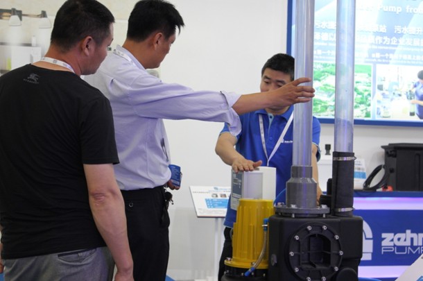 展会中有很多客户为找污水提升器而来,这不,图片上的两名客户正是找到了泽德,正在认真咨询。泽德的工作人员不仅热情的为客户讲解,还做起了产品演示。